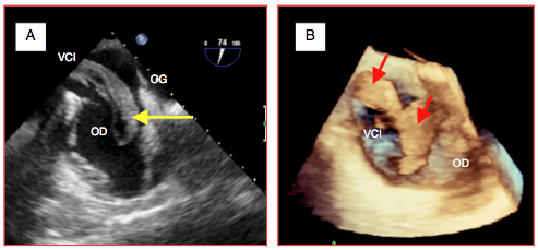 Diagnostic différentiel: thrombus, endocardite, anomalie anatomique sans signification.